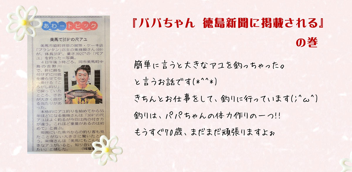 徳島県美馬市の『喫茶&ケーキの店プランタン』のホームページをご覧いただき、ありがとうございます。